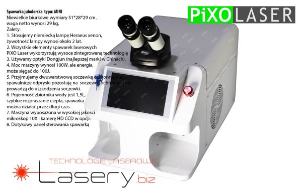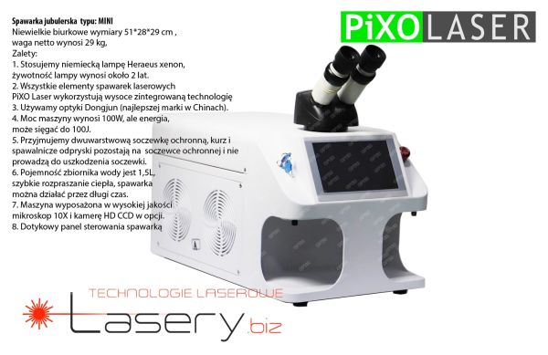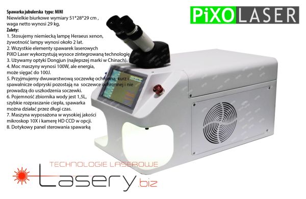 Jubilerska i stomatologiczna spawarka PiXO LASER wykorzystuje system spawania laserowego Pixo Laser serii SL z szerokim zakresem mocy Nd:YAG, co pozwala na zaoferowanie urządzenia o różnorodnym zastosowaniu i szybkim działaniu.